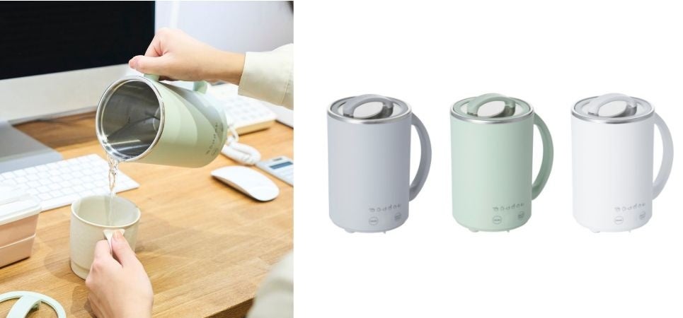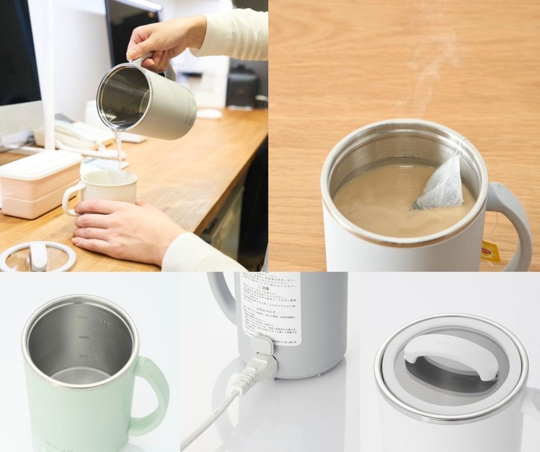 デスクの上で飲み物の温めや調理ができるマグカップ型電気なべ