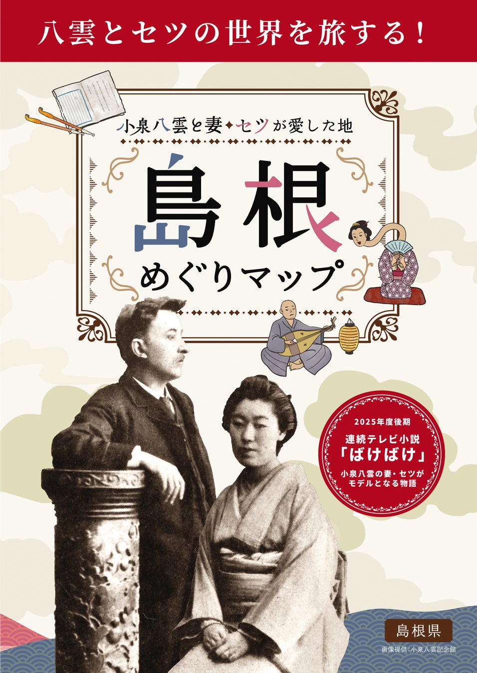 2025年の秋から放送される連続テレビ小説「ばけばけ」をきっかけとして、ドラマのモデルである小泉八雲・セツ夫妻が出会い暮らした松江や、二人が旅した出雲、隠岐などをめぐる『小泉八雲と妻・セツが愛した地 島根 めぐりマップ(B5版・8P)』が完成しました。