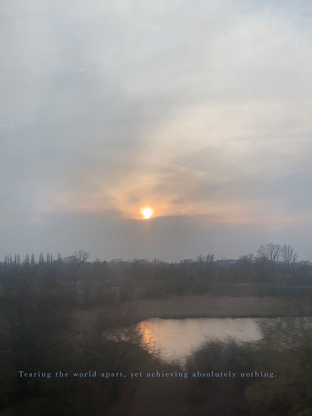 クーデター、侵略、戦争、突然の世界的経済危機など、地球上のあらゆる混乱は加速度を増しています。一見、穏やかで美しい風景を切り取ったかのような米田知子の写真が撮影されたのは、休戦状態で今も緊張が続く韓国と北朝鮮の間の非武装地帯(DMZ)。袁廣鳴(ユェン・グァンミン)は、居心地の良い居住空間が何者かによって次第に破壊されていく、戦争と背中合わせの日常を描き出しています。精霊を召喚するパフォーマンスで環境問題を鋭く批評するクゥワイ・サムナン、高度情報化社会と新自由主義が可能にしたギグエコノミーやプラットフォーム労働の問題を扱うキム・アヨンなど、さまざまな作品を通じて、世界で起こっている同時代的な危機や社会問題について考えます。