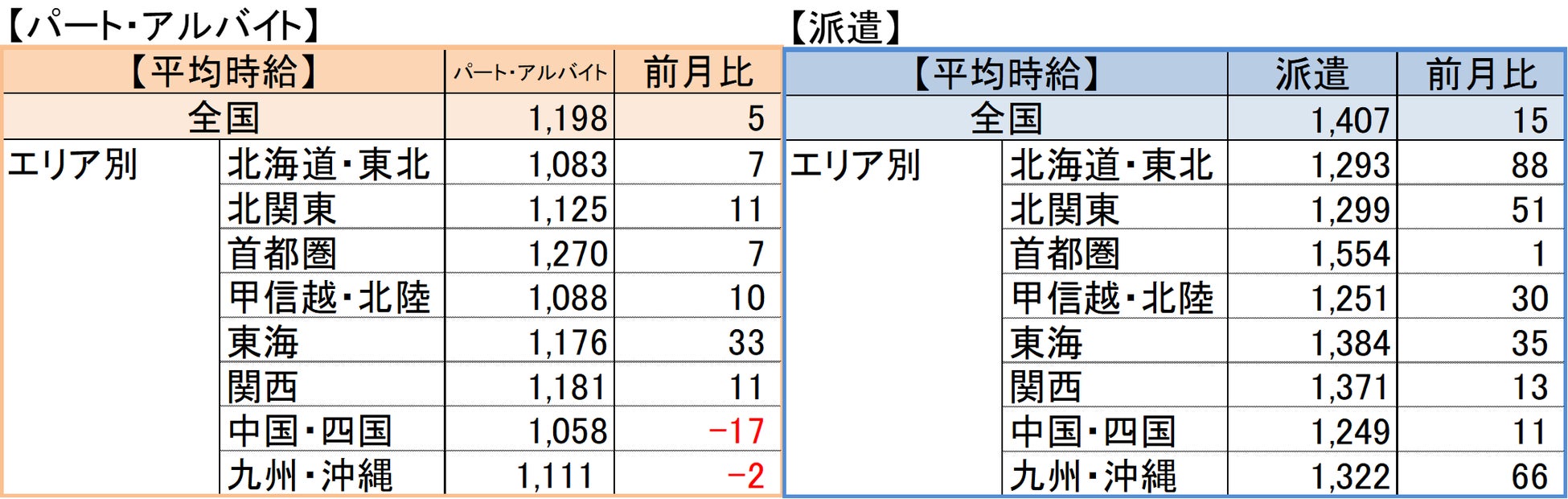 【パート・アルバイト】全国・全職種平均時給は1,198円。前月比+5円。前年同月比+40円。