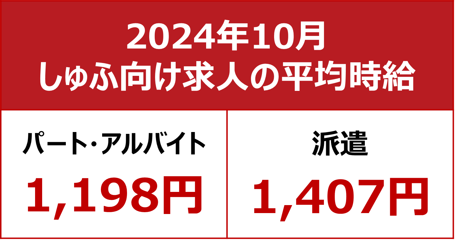 【2024年10月しゅふ求人の平均時給】パート・アルバイト:『1,198円』、派遣:『1,407円』/パート時給過去最高!今年6度目