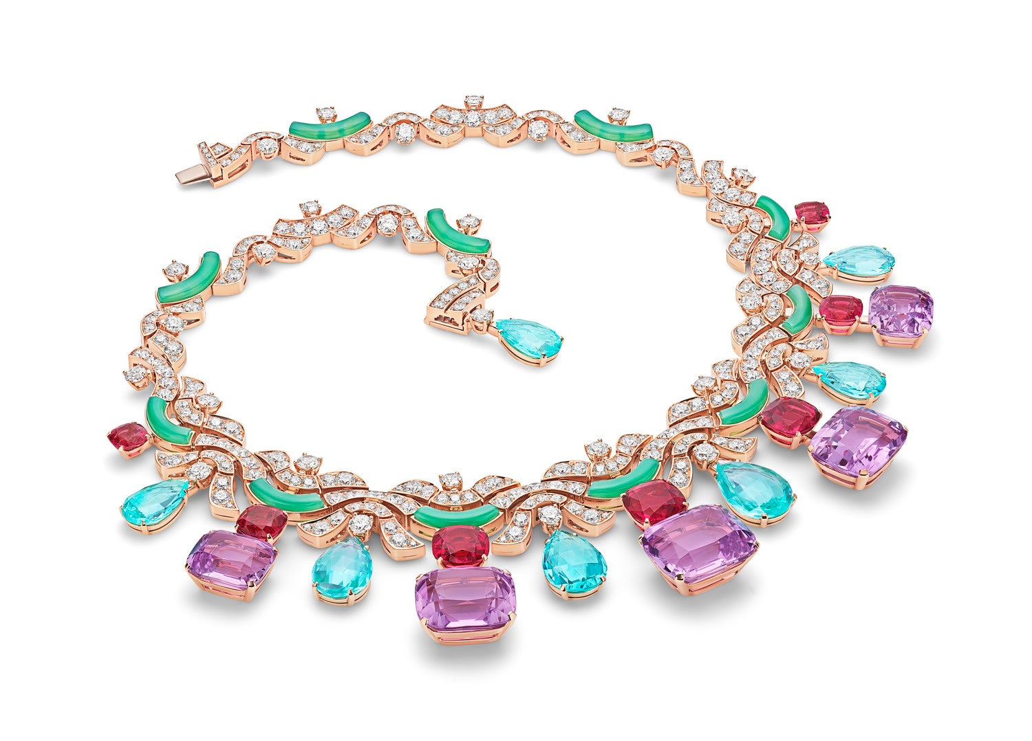 ブルガリのハイジュエリーは、息を呑むような世界を呼び起こします。そこには、最も稀で美しいかたちで表現される母なる自然の威厳と、人間による洗練されたクリエイションが絶え間ない対話を続けています。