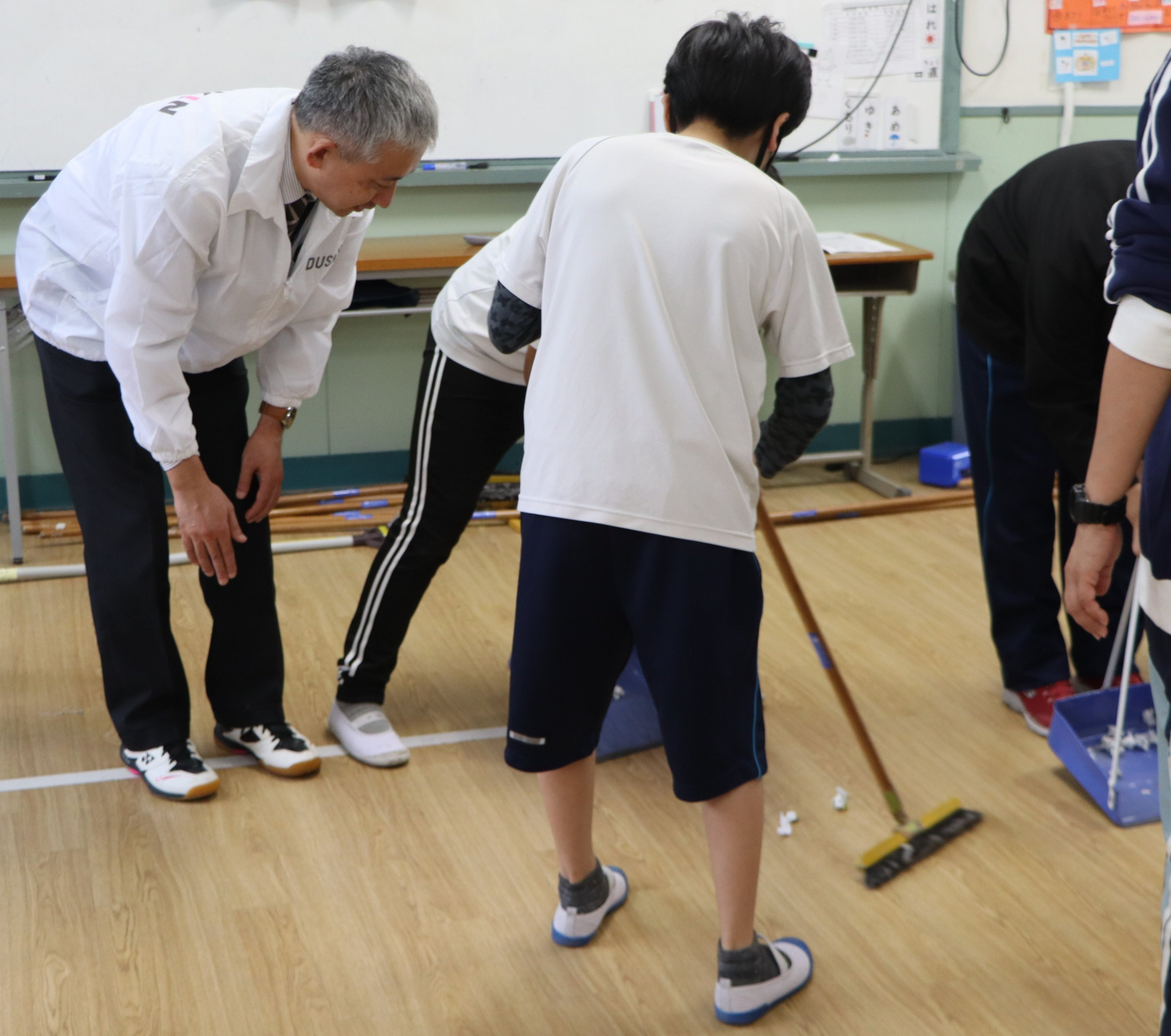 ほうきやぞうきんを使った実習も皆さんが一生懸命に参加してくれたので、私たちも楽しい時間を過ごせました。掃除は生活していく中で切り離せないものです。なぜ掃除が必要なのか、どうすれば上手くできるのか、まずは関心を持っていただき、楽しみながら学び身に付けていって欲しいと思います。