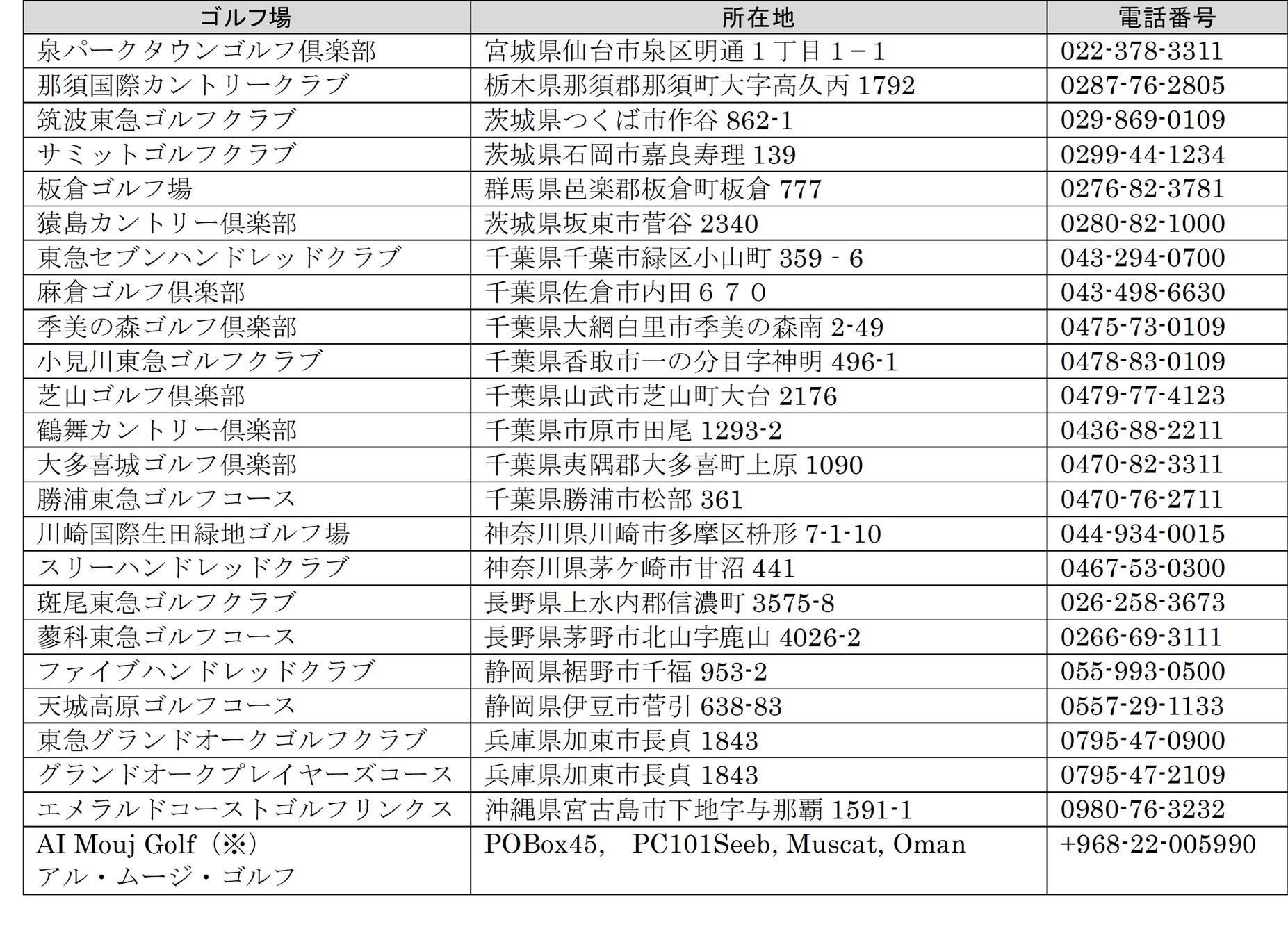 本イベントの会場となる東急グループ各社が運営する全国のゴルフ場23コース、特別提携1コース(※)