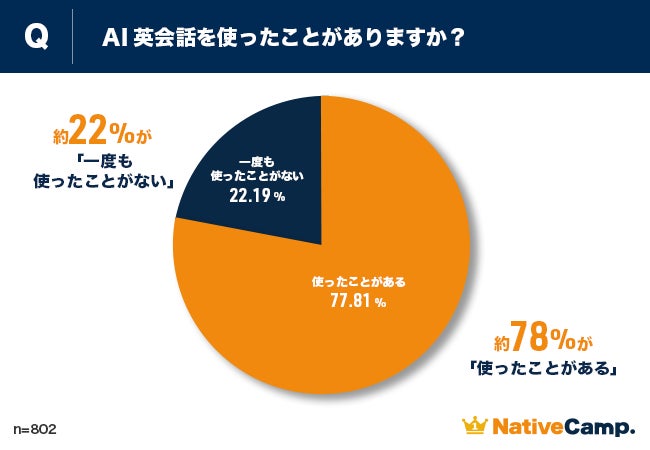 ネイティブスピーカーと回数無制限のオンライン英会話サービス「ネイティブキャンプ英会話」を展開する株式会社ネイティブキャンプ(東京都渋谷区 代表取締役:谷川国洋)は、AI英会話およびオンライン英会話の利用実態に関する調査を実施いたしました。