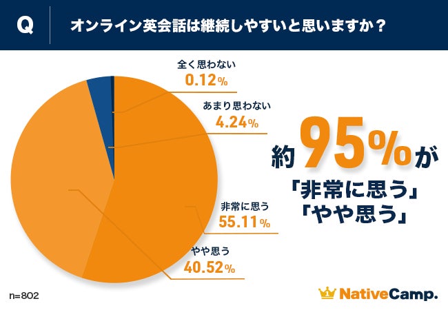 「継続しやすい」と回答した人は全体の95.6%。講師とのリアルなやり取りが学習のモチベーションにつながっていることがうかがえます。