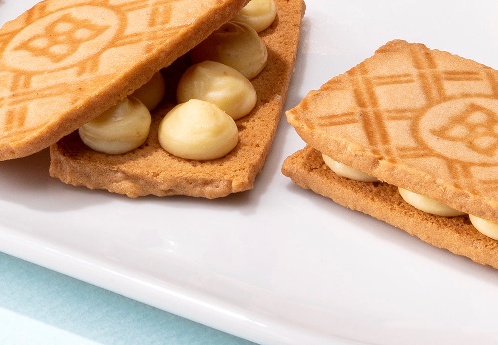 その上から、バターステイツの焼印を押したサクサクと軽やかな“バターサブレ”でサンド。お口の中でほろほろっとほどけるバターサブレと、なめらかに口どけるホイップショコラは相性抜群です!バタースイーツ専門店だからこそ生まれた“バター×ショコラ”の発想で、お口に広がるコクをお楽しみください。