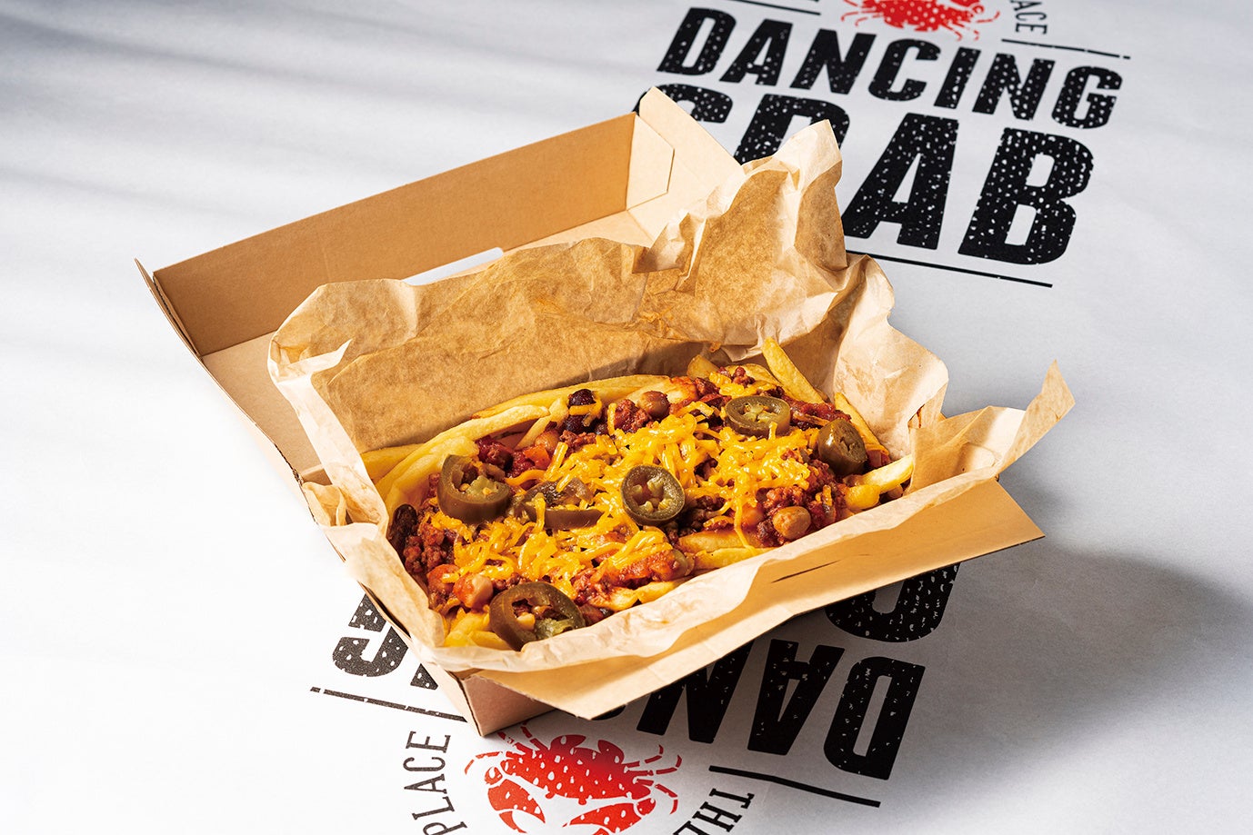 チリビーンズととろーりチェダーチーズをのせた病みつきになる濃い味のフライドポテト。ハラペーニョの辛さがアクセントに。