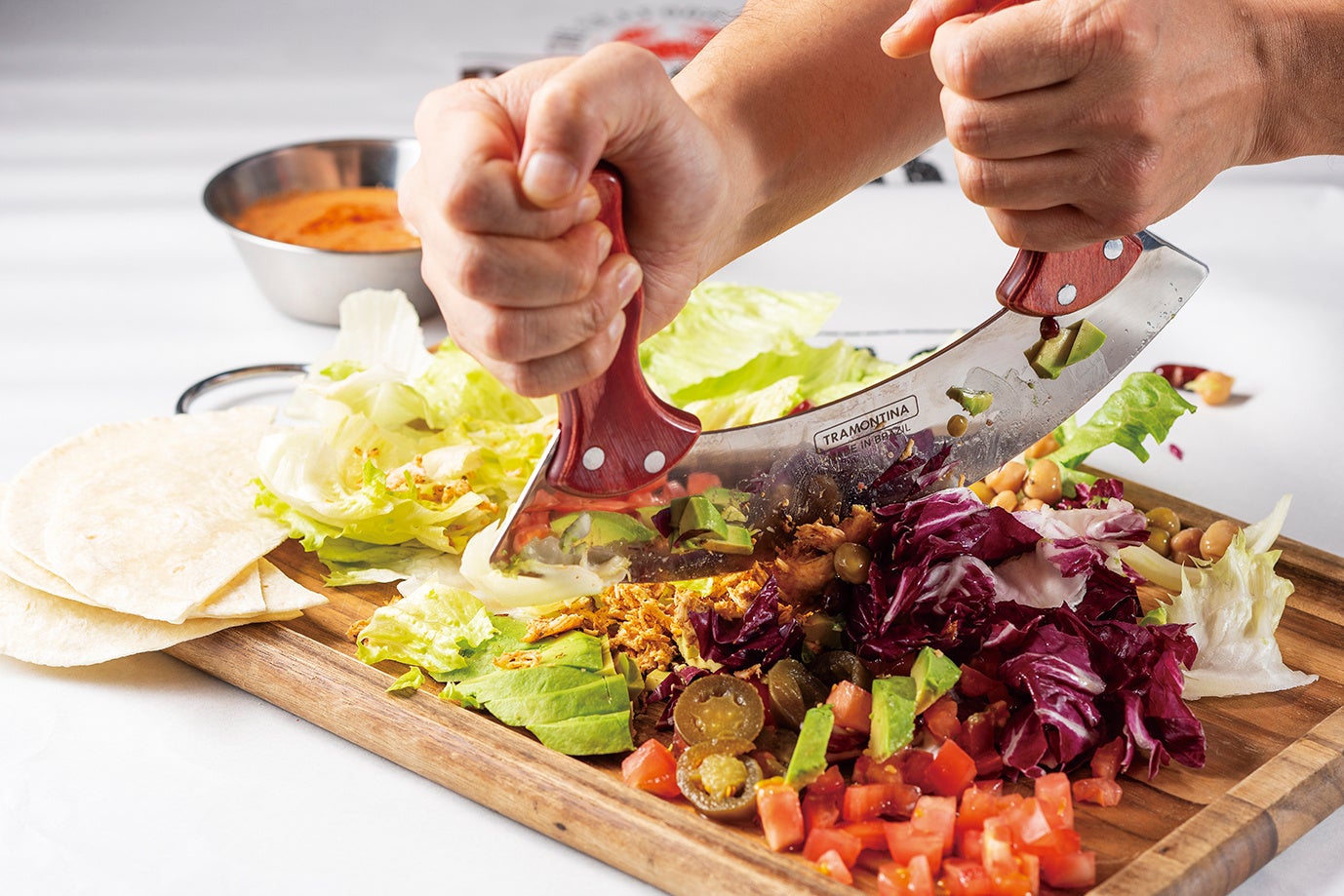 フレッシュな野菜とチキンやミックスビーンズ、ハラペーニョなどを細かく刻み、特製スパイシードレッシングと一緒にトルティーヤに包んで召し上がれ。