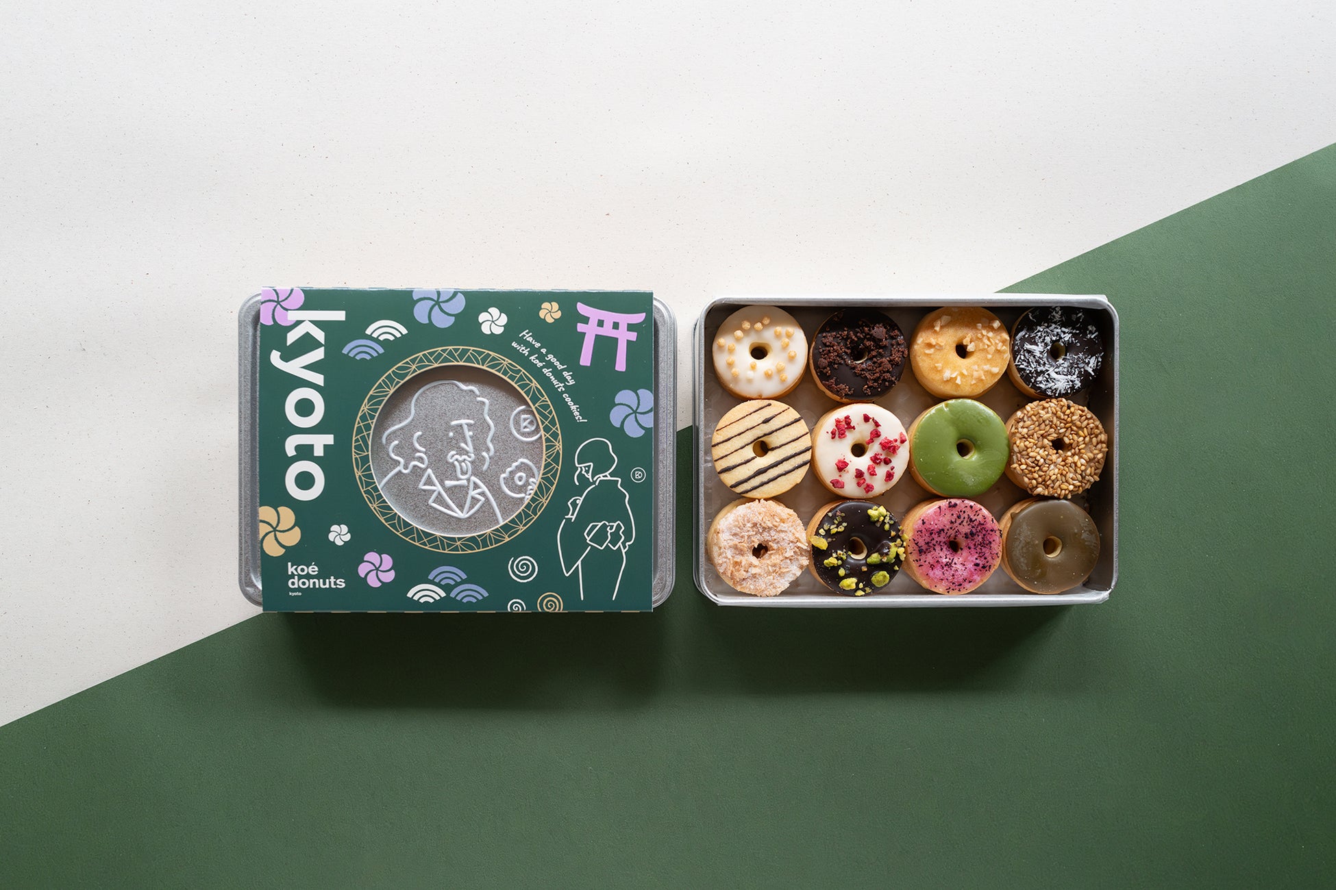 さらに、手土産として人気の『koe donuts クッキー缶』より、京都店限定のスリーブがリニューアルして発売。京都をイメージした“鳥居”のモチーフや柄を取り入れ、京都土産にもおすすめです。