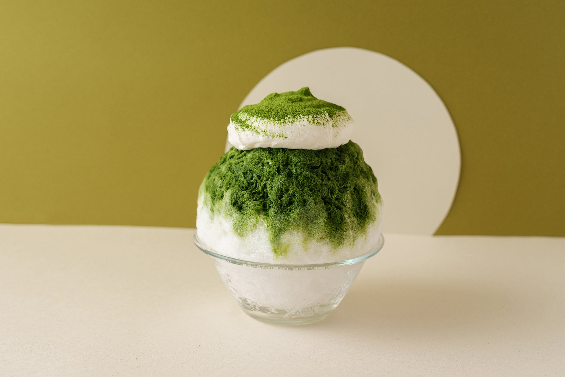 京都産宇治抹茶を使用した、抹茶を感じられるかき氷。中にはコクのあるチーズアイスとわらび餅を入れて、抹茶ソースとマスカルポーネクリームをトッピング。濃厚な抹茶の香りもありながら、チーズの酸味で後味スッキリに仕上げました。
