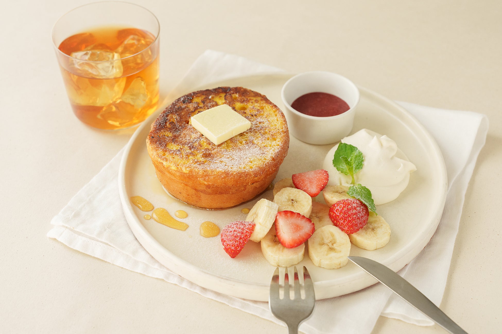 京都美山産牛乳と平飼い卵を使用したシロップをたっぷり染み込ませて焼き上げた、オリジナルフレンチトースト。和三盆糖を使用したホイップクリームや有機いちごの自家製ソースで、最後まで飽きずにお召し上がりいただけるデザート系のランチプレートです。
