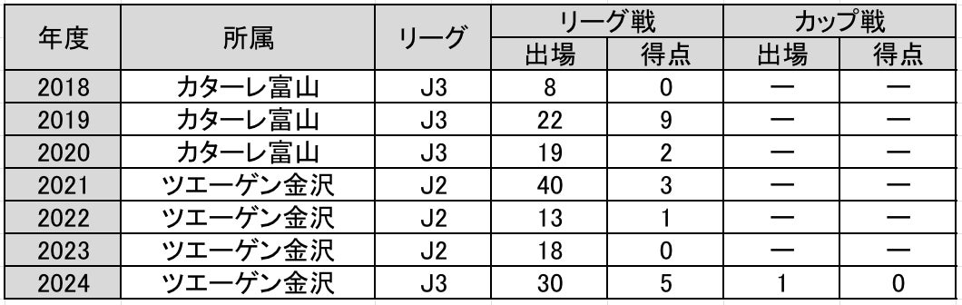 松任FC ジュニアユース - エスポワール白山FC ジュニアユース - 松任高校 - 金沢学院大学 - カターレ富山 - ツエーゲン金沢