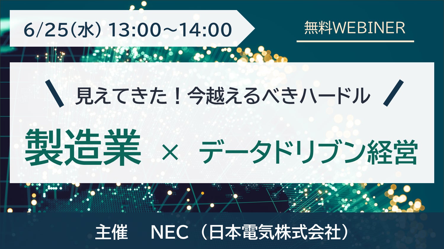 NEC、製造業向けデータドリブン経営をテーマにしたウェブセミナーを6/25(水)にオンラインで開催