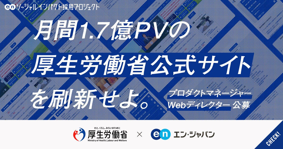 厚生労働省、エン・ジャパンを通じて公式サイトのリニューアルを担うプロ人材を公募