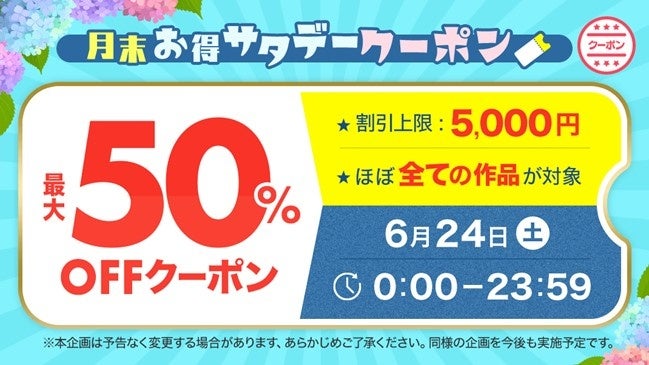 6月24日(土)ebookjapanで誰でも50%OFF!先月の「月末お得サタデー」の人気作品ランキングも掲載!