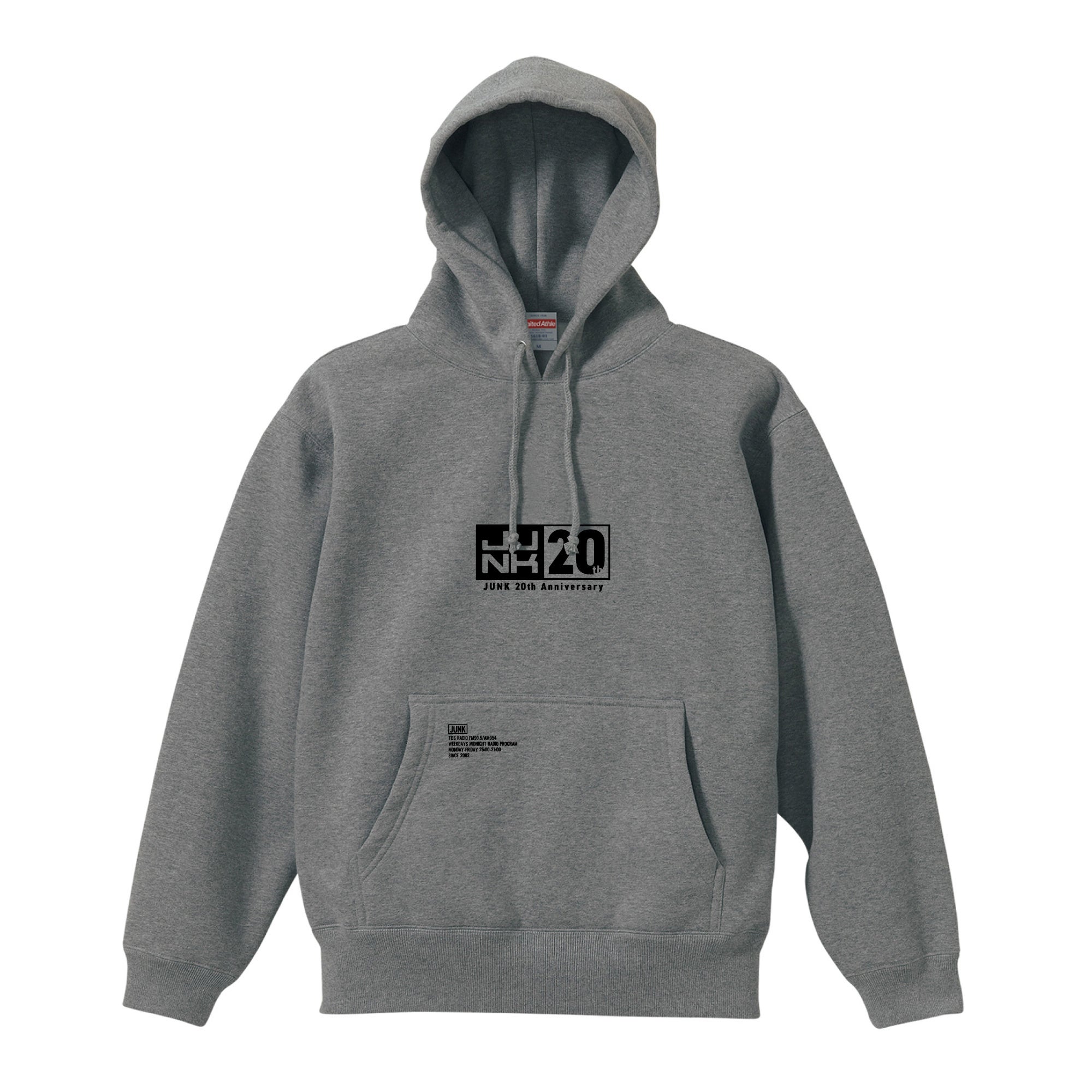 ●JUNK20thロゴ プルオーバーパーカー(ブラック/ヘザーグレー)