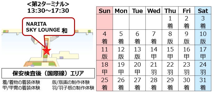 成田空港では、海外から日本を訪れるお客様に、日本の文化に触れて「また訪れたい」という思いを抱いていただくため、“日本ならでは”を体験いただけるイベントでおもてなしをしております。