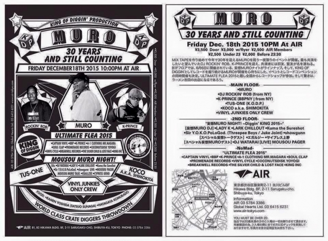 発売に先駆け、12月8日(火)には本書の発刊と活動30周年を記念した特別プログラムがDOMMUNEにて配信決定。また、12月18日(金)には今年いっぱいでのクローズが決まっている代官山の人気クラブAIRで、MUROの30周年を祝うイベント“30 years and still counting”も開催されます。
