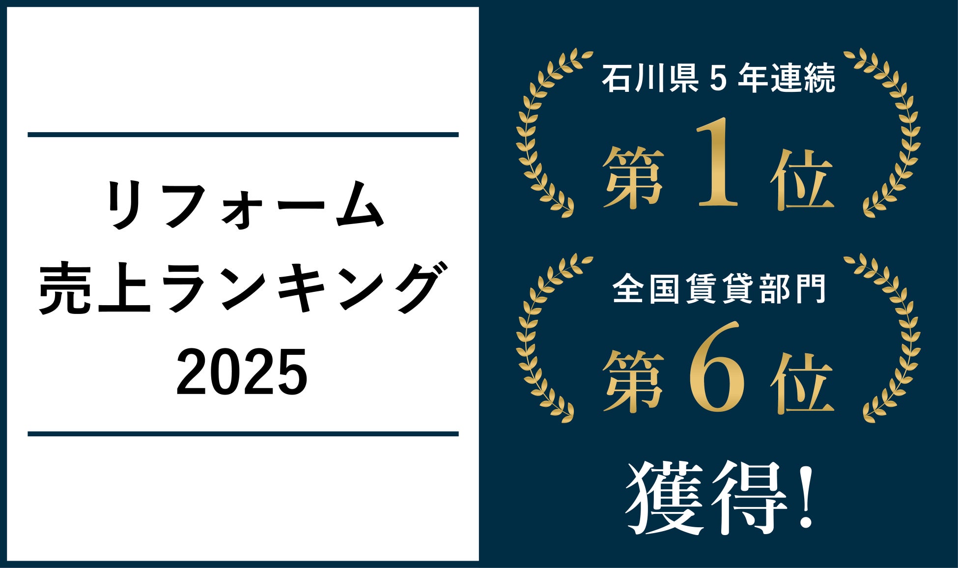 不動産仲介・管理、リフォーム、資産活用などを展開する、株式会社クラスコ(本社:石川県金沢市/代表取締役社長:小村典弘)は、リフォーム業界の専門紙『リフォーム産業新聞』(リフォーム産業新聞社、2025年12月発行)にて発表された「2025年 都道府県別リフォーム売上ランキング」において、石川県内5年連続第1位を獲得し、賃貸部門において全国第6位にランクインしたことをお知らせいたします。