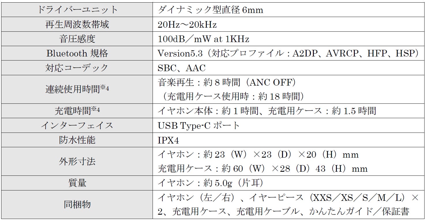 ・XXSを含めた5サイズのオリジナルイヤーピースを同梱