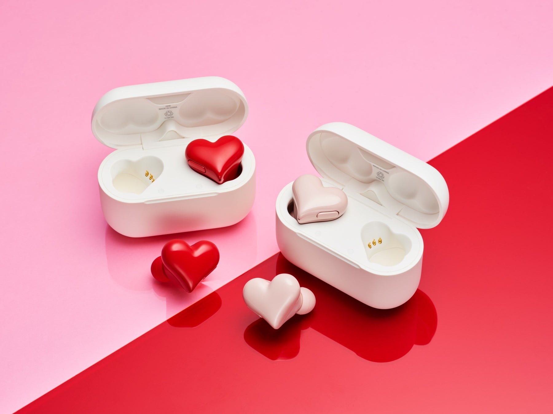 「HeartBuds」は“可愛いワタシでいたい”をキーメッセージにアクセサリー感覚で身につけるハート型のワイヤレスイヤホンです。耳元につけるだけ、持っているだけで心が弾むようなハート型のデザインで、誰が見てもかわいいと思うようなフォルムとカラーリングが特長です。