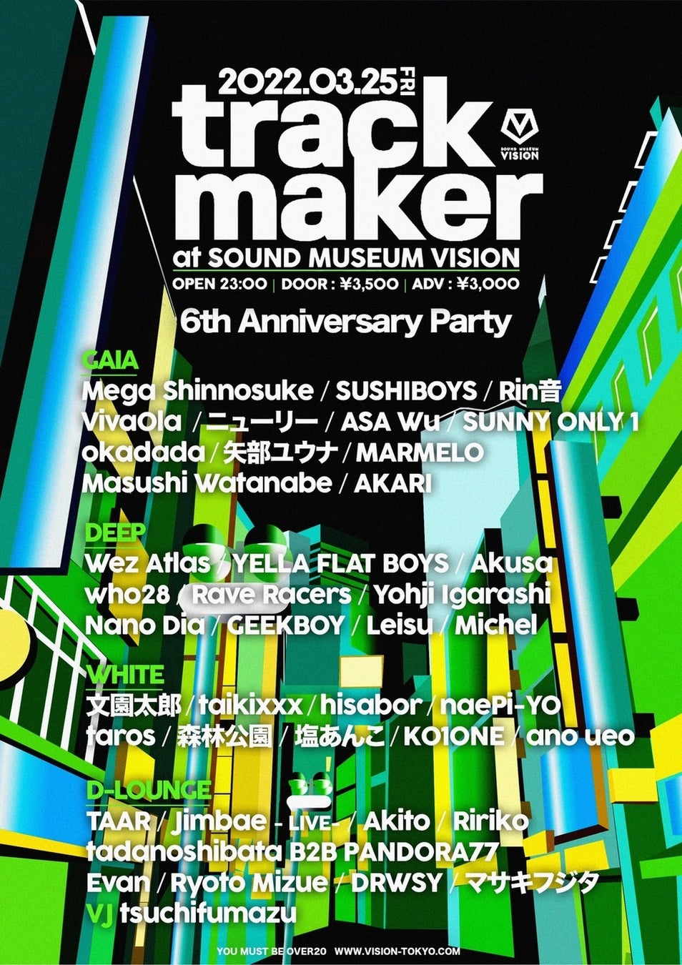 渋谷VISIONが誇る人気イベント「trackmaker」が6周年にスペシャルなラインナップで開催!
