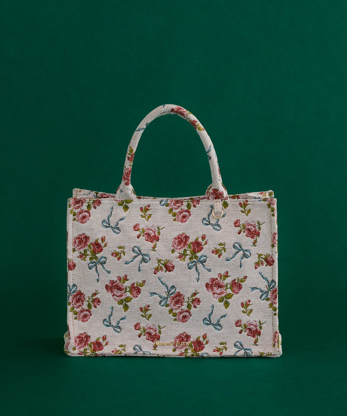 ローズリボン柄ゴブランスクエアトートMバッグ