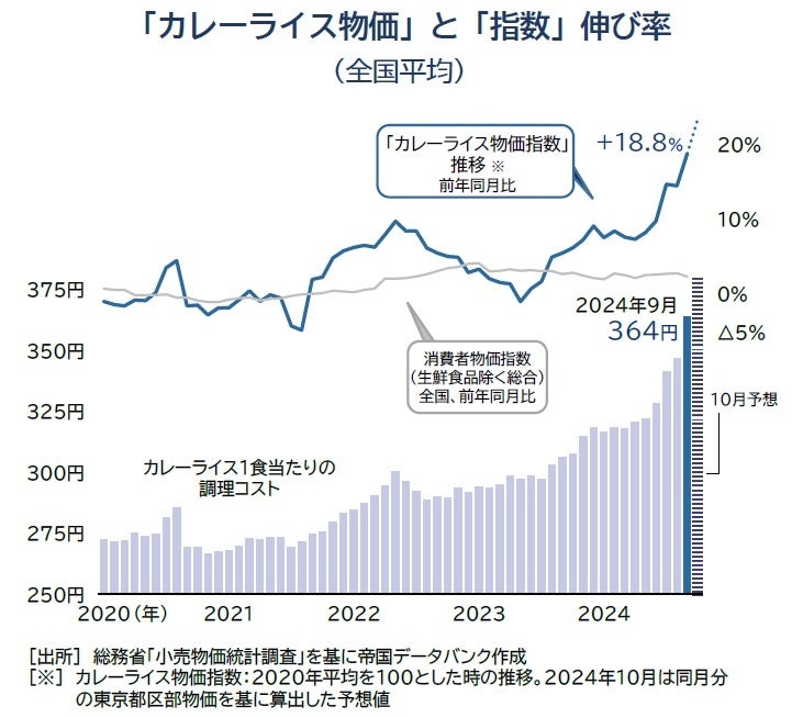 カレーライス物価、9月は1食364円 6カ月連続で最高値更新 「コメ」価格の値上がりがライスに影響 10月は380円到達予想