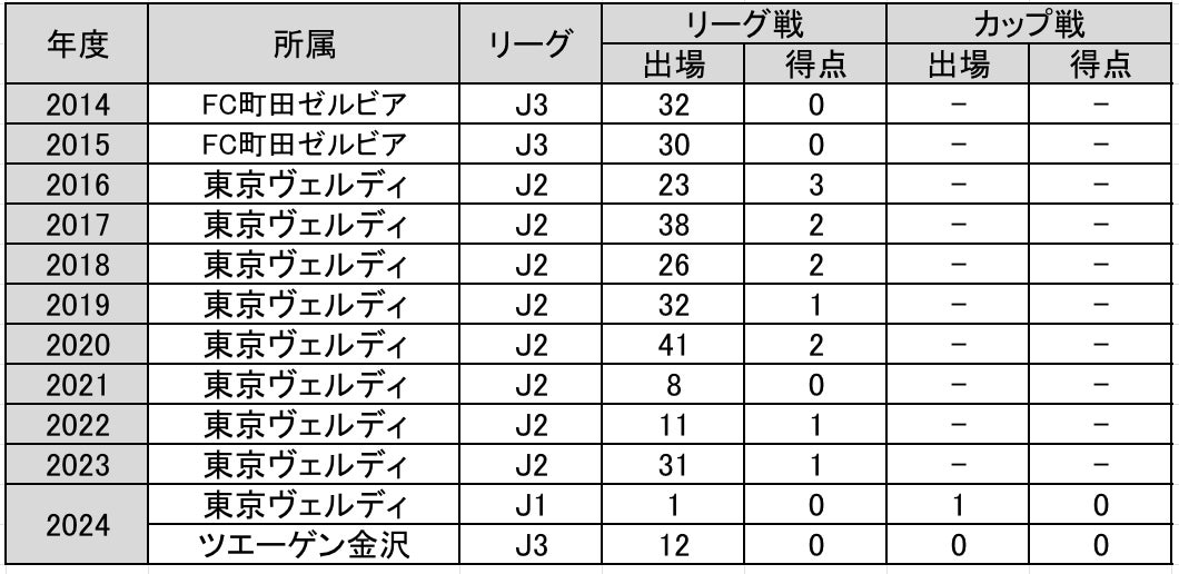 東久留米ひばりSC - 横河武蔵野FCJrユース - 東京ヴェルディユース - 法政大 - FC町田ゼルビア - 東京ヴェルディ - ツエーゲン金沢