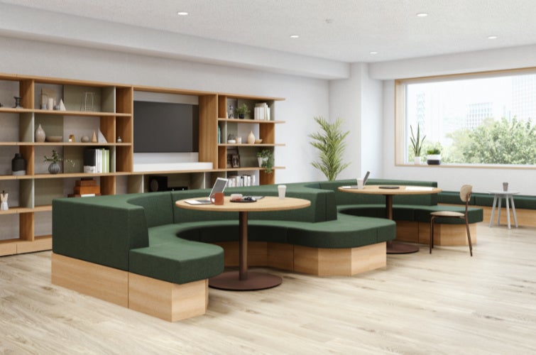 対面だけではない円滑なコミュニケーションを実現するラウンドタイプを拡充します。自分で座る位置を決められるため、隣の人と心地よい距離を保てます。1on1ミーティングはもちろん、休憩時などさまざまな用途にお使いいただけます。ほかにもベンチタイプなど、豊富なバリエーションをご用意しています。