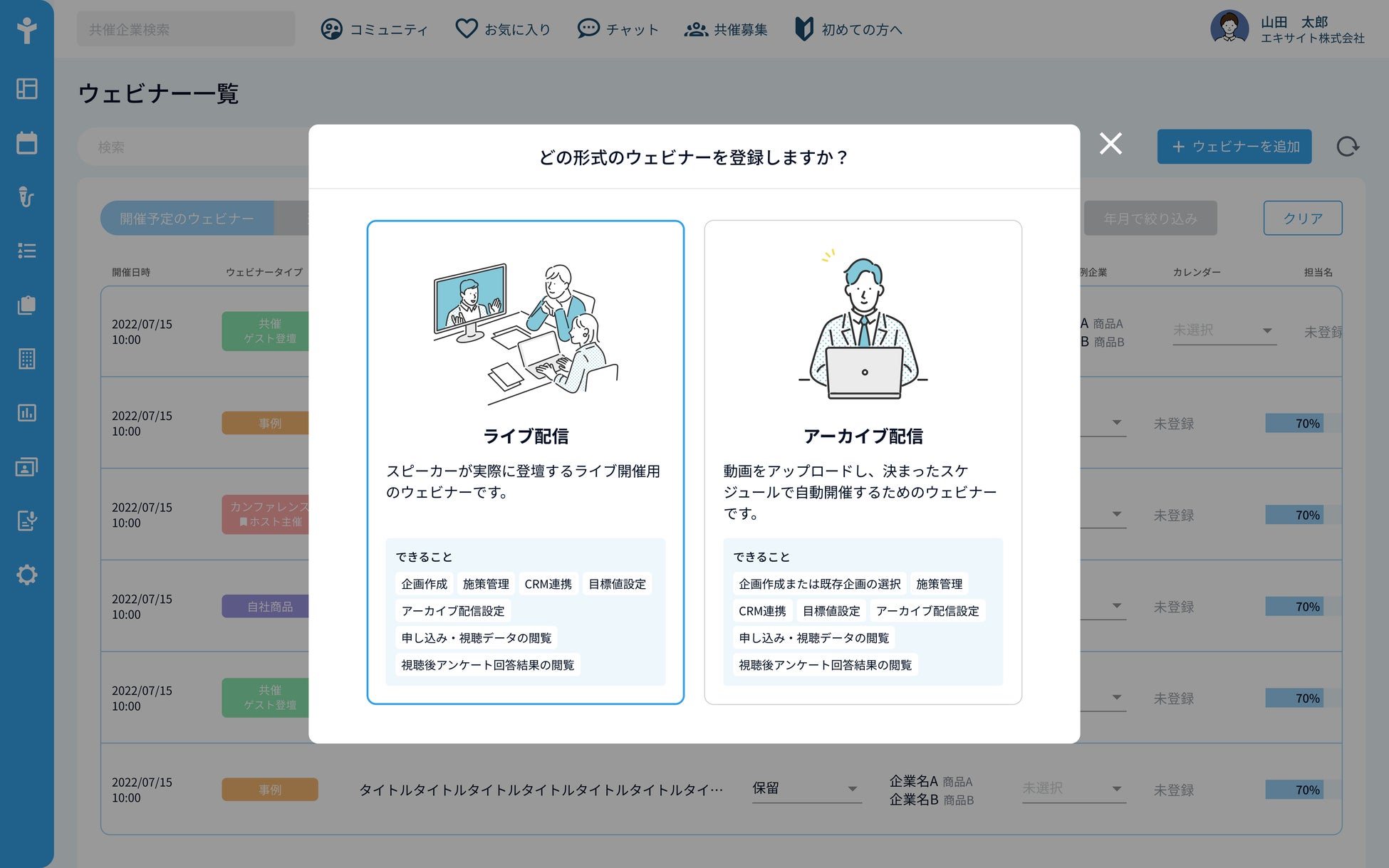 1.ウェビナー企画作成からアーカイブ配信まで一元管理