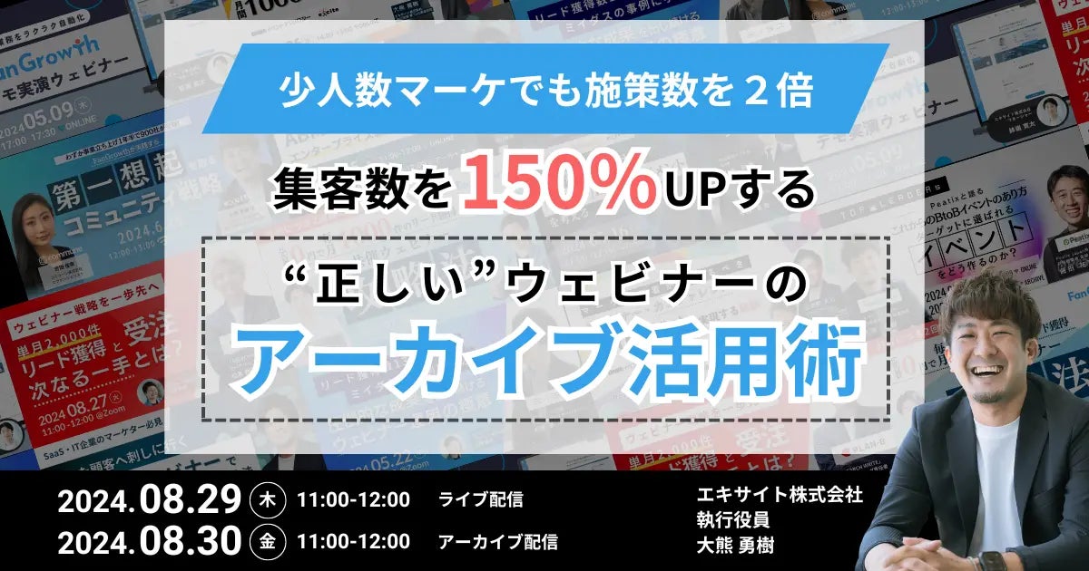 ■ウェビナー開催決定!少人数マーケでも施策数を2倍|集客数を150%UPする"正しい"ウェビナーのアーカイブ活用術
