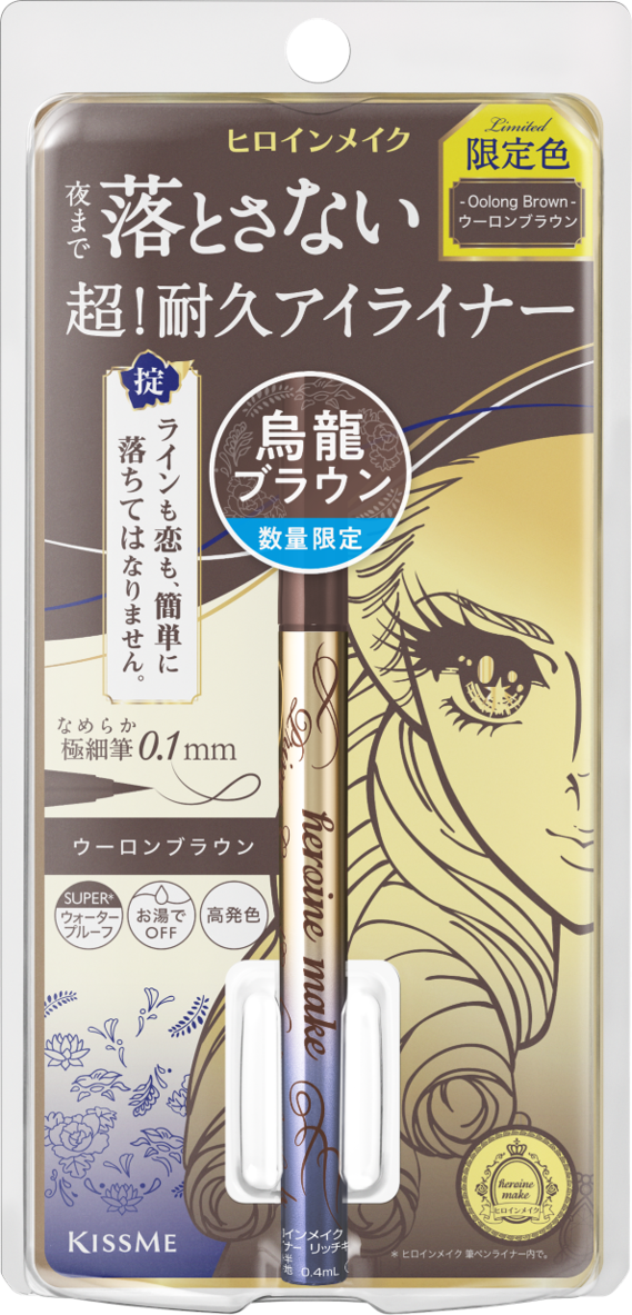 高い耐久性が人気の「ヒロインメイク プライムリキッドアイライナー リッチキープ」から、肌馴染みが良いくすんだ赤みが特徴の「ウーロンブラウン」が数量限定で登場。