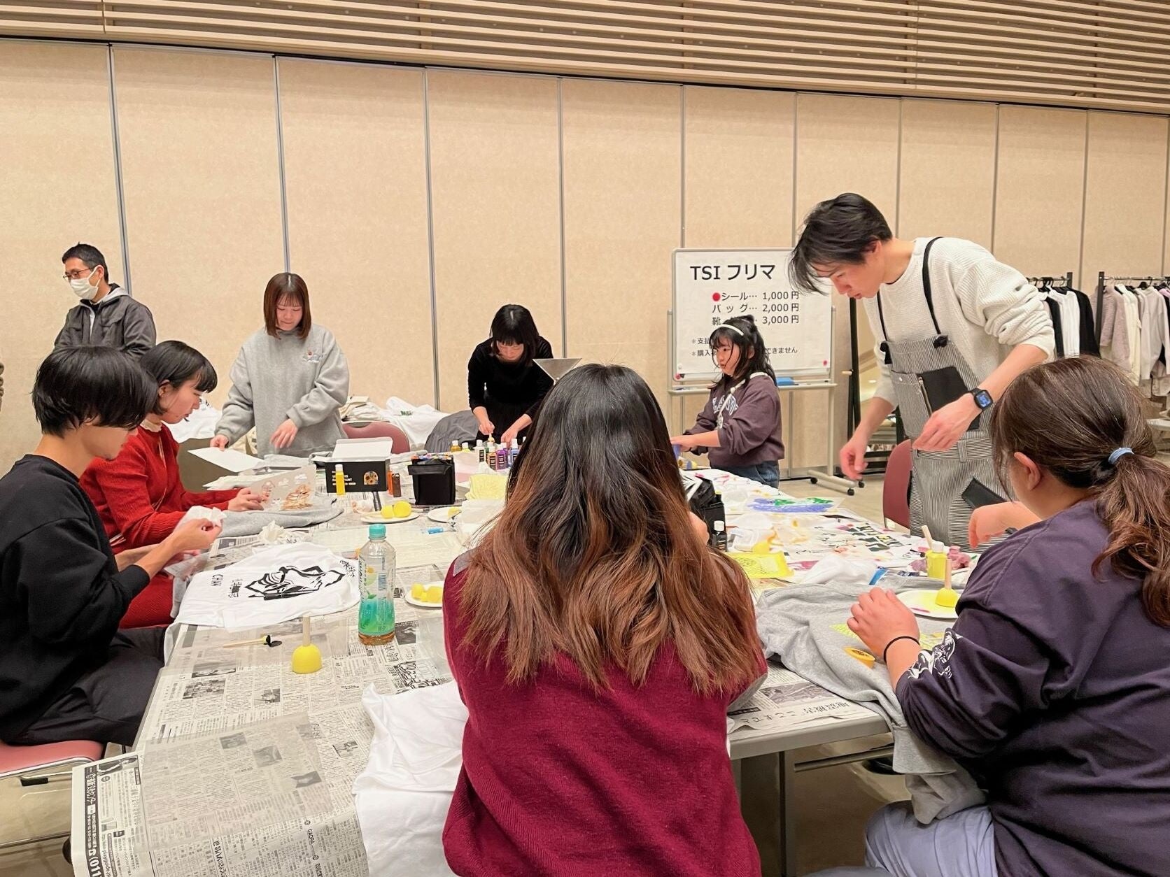 会場には、TSIグループの修理お直し工房の「ReSew」が体験ブースを出店。住民の皆さんが着なくなったカットソーやシャツ、スウェットを持参し、思い思いにペイントして再生するワークショップを指導。服を捨てないというサステナブルの意識を訴求し、子どもから大人まで大きな人気を集めました。