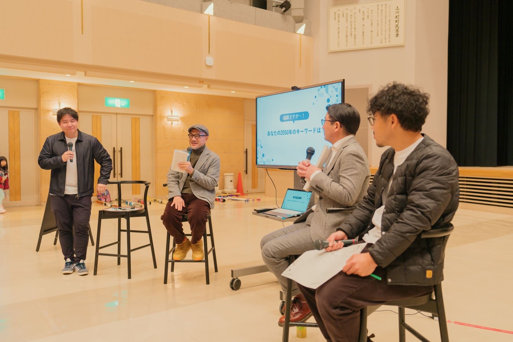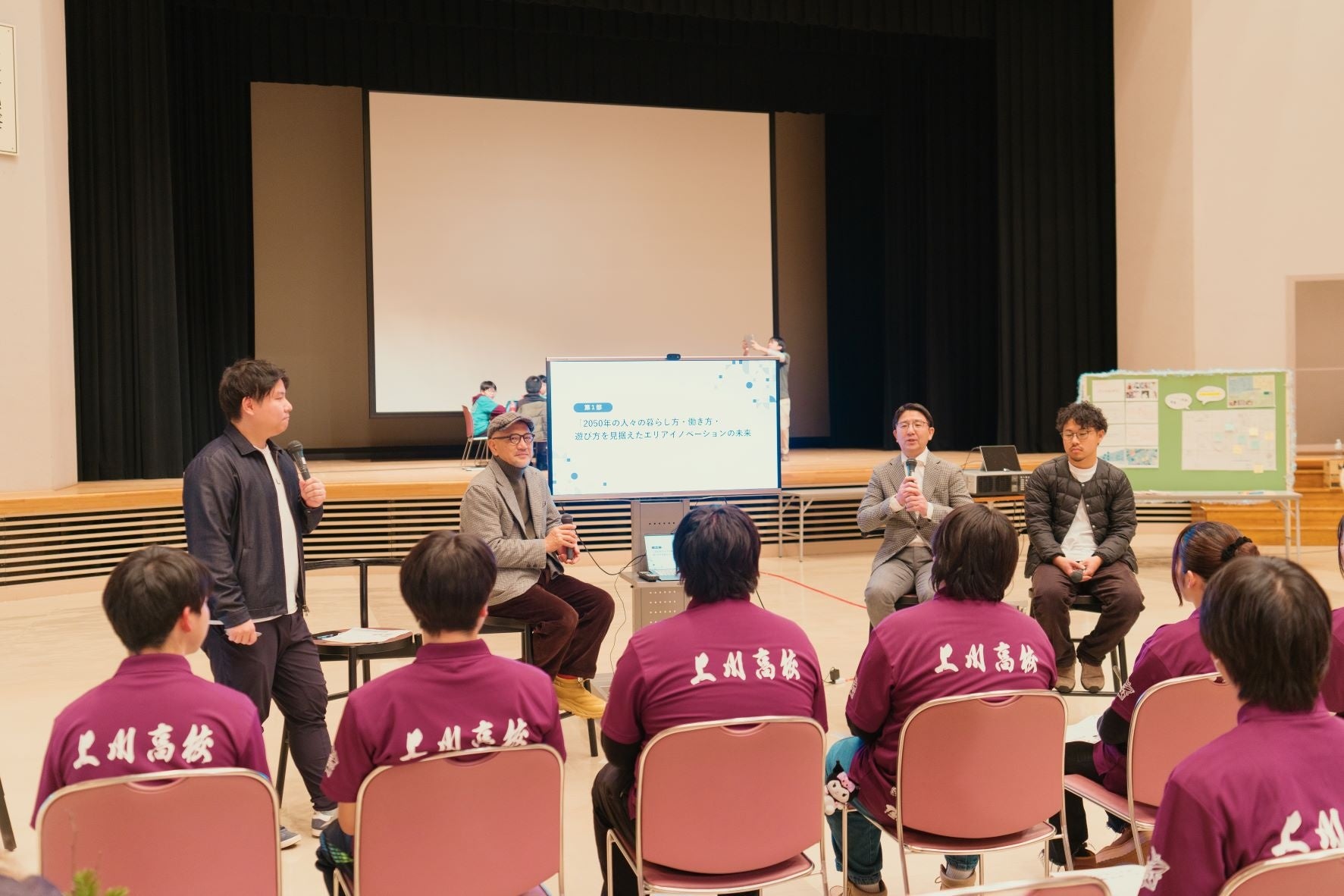 第1部は「未来(2050年)の人々の暮らし方や働き方、遊び方におけるエリアイノベーション」をテーマに上川高校の学生たちが発表した「あなたの2050年のキーワード」を基にディスカッションを実施。第2部は「NO LIMITS~これからの明るい未来を創っていく~」、第3部は「未来を創る上川町学園構想」について講演が行われました。