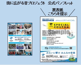横浜音祭り2022「街に広がる音プロジェクト」の会場で無料配布される『街に広がる音プロジェクト公式パンフレット』の裏表紙にある「クーポン」をご提示いただくと、みなとみらいの商業施設で割引や特典サービスをご利用いただけます。飲食、服飾・雑貨、サービスなど100店舗以上で割引やノベルティプレゼントなどが受けられます。