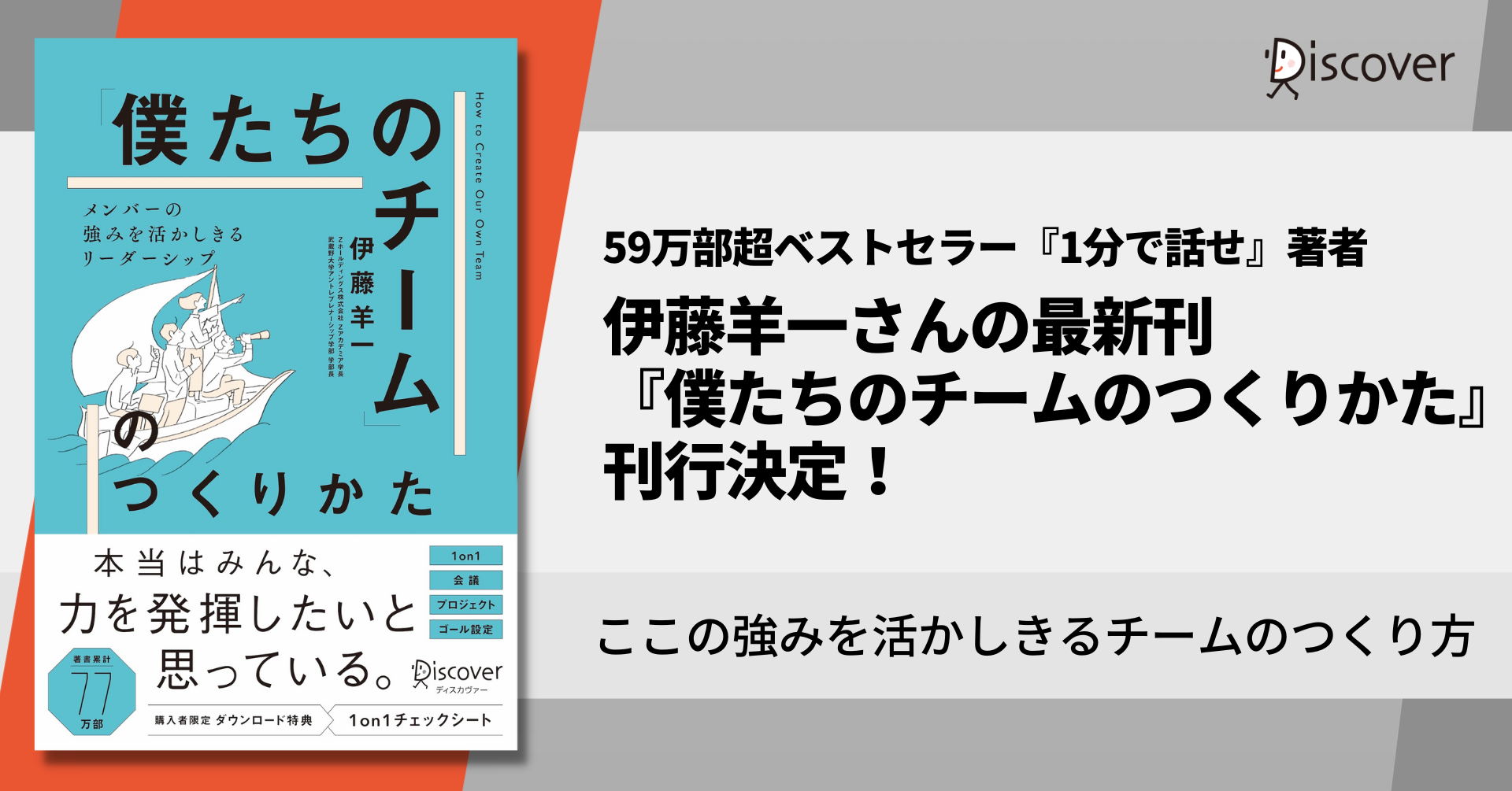 59万部を超えるベストセラーとなった『1分で話せ』の著者である伊藤羊一さんの新刊を発売することとなりました。今回のテーマは、これからの「チーム」のつくり方です。
