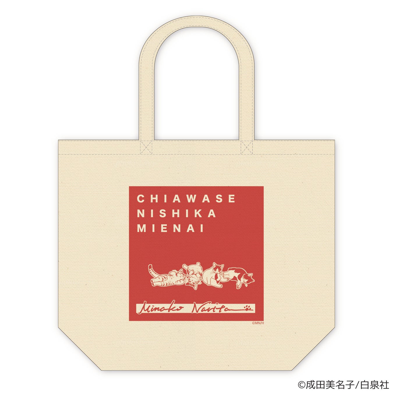 成田美名子先生がデザインした「ちあわせにしかみえない」の猫たちがプリントされた大きくて使いやすいトートバッグ。
