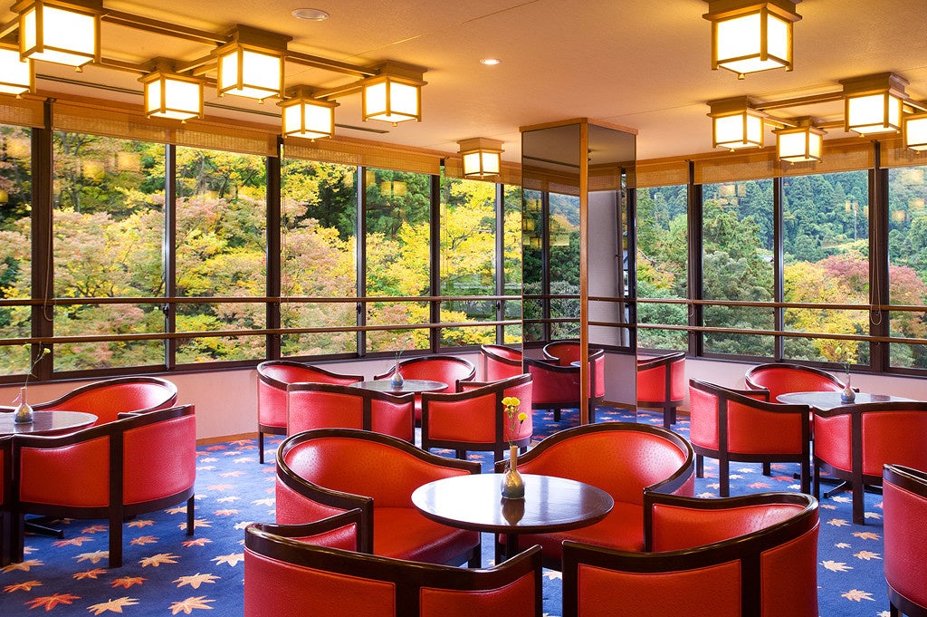 露天風呂や貸切風呂、ロビーラウンジ、客室からは鶴仙渓の新緑、深緑、紅葉、雪景色など、四季折々の情景をご覧いただけます。