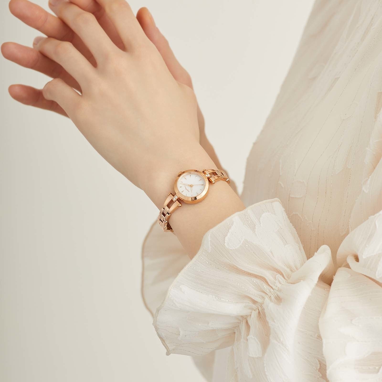 今年18周年を迎え、進学や入社、新たな一日の始まりなど、人生の大切な節目を迎える女性に寄り添い、オンオフ問わず使用できる時計として多くの女性に親しまれている腕時計ブランド「エンジェルハート」は、2022年4月20日に2022年春夏3rdコレクション2型を発売いたします。クラシカルなローマ数字が刻印されたベゼルや、6時・12時位置にきらめくクリスタルが特徴。しなやかにフィットするベルトが手首を華奢に見せ、アクセサリー感覚で着用できるおめかしシーンに最適なモデルです。また2022年春夏新作商品として2月から4か月連続新作を発売中。同時に新作Luxeを身に着けたブランドミューズの橋本環奈さんのビジュアルも公開します。