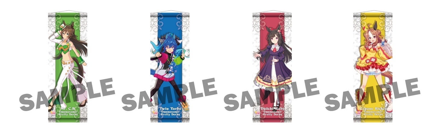 | 3. ウマ娘 プリティーダービー ミニタペストリー 勝負服 全17種 各1,650円 W180×H500mm ゲーム内勝負服のイラストを使用したミニタペストリーです。 |