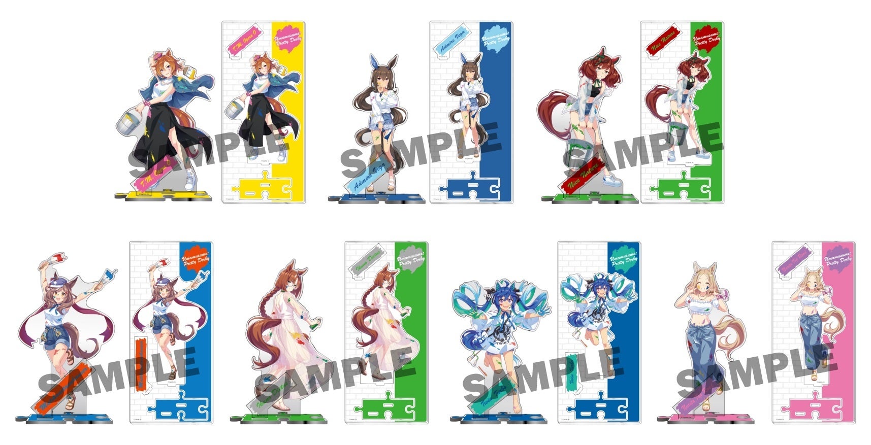 そのほか、描き下ろしイラストを使用した「ウマ娘 プリティーダービー クリアファイル ペインタースタイル」、「ウマ娘 プリティーダービー ミニタペストリー ペインタースタイル」や、勝負服イラストを使用した「ウマ娘 プリティーダービー アクリルボード 勝負服」なども販売予定です。