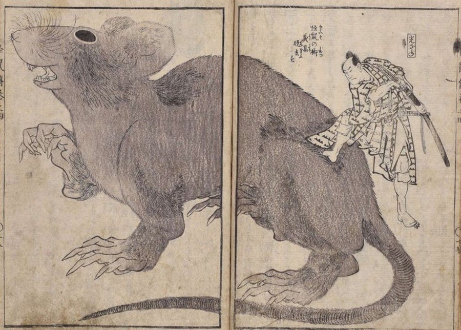 いずれも曲亭馬琴作・葛飾北斎画の『頼豪阿闍梨怪鼠伝 前編』という読本ですが、