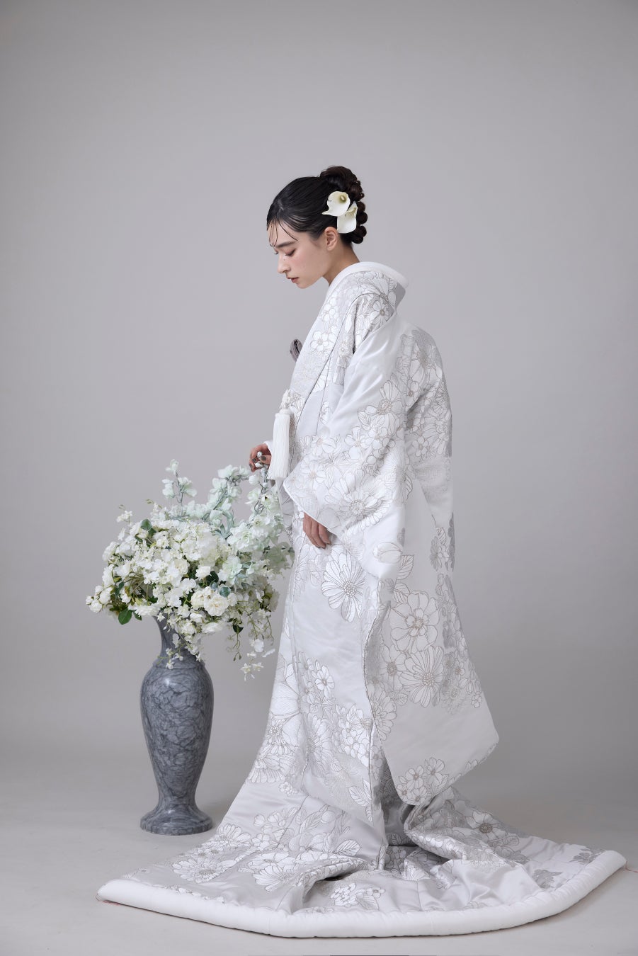 aim東京原宿店にシルバー調の花柄白無垢が入荷いたしました。