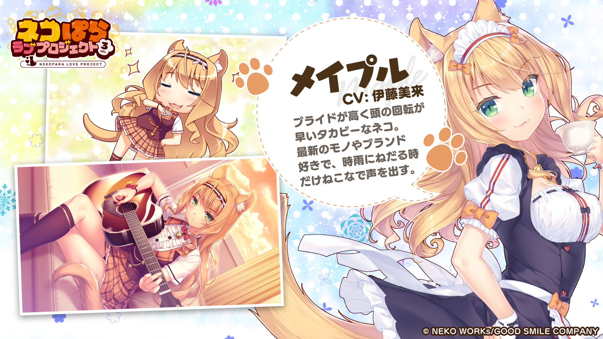 株式会社グッドスマイルカンパニー(本社:東京都千代田区、代表取締役社長:岩佐厳太郎、以下 グッドスマイルカンパニー)は、全世界でシリーズ累計650万本以上を販売した大人気恋愛ADVゲーム『ネコぱら』を移植開発したスマホゲーム『ネコぱら ラブプロジェクトVol.3』をApp Store、Google Playストアにてリリースいたしました。