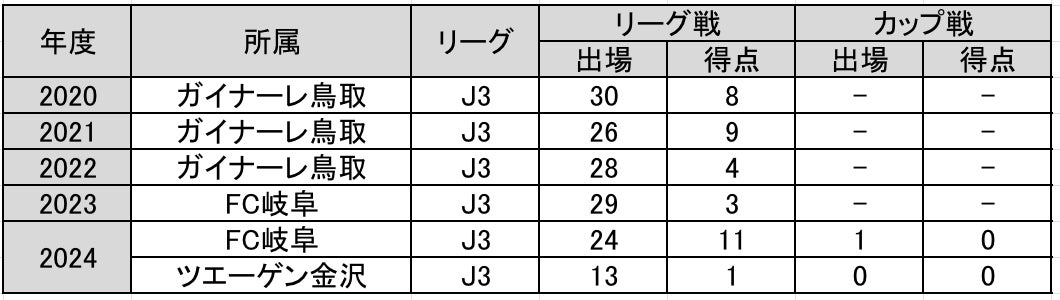 大山田サッカースポーツ少年団 - セレッソ大阪西U-15 - 四日市中央工高 - ガイナーレ鳥取 - FC岐阜