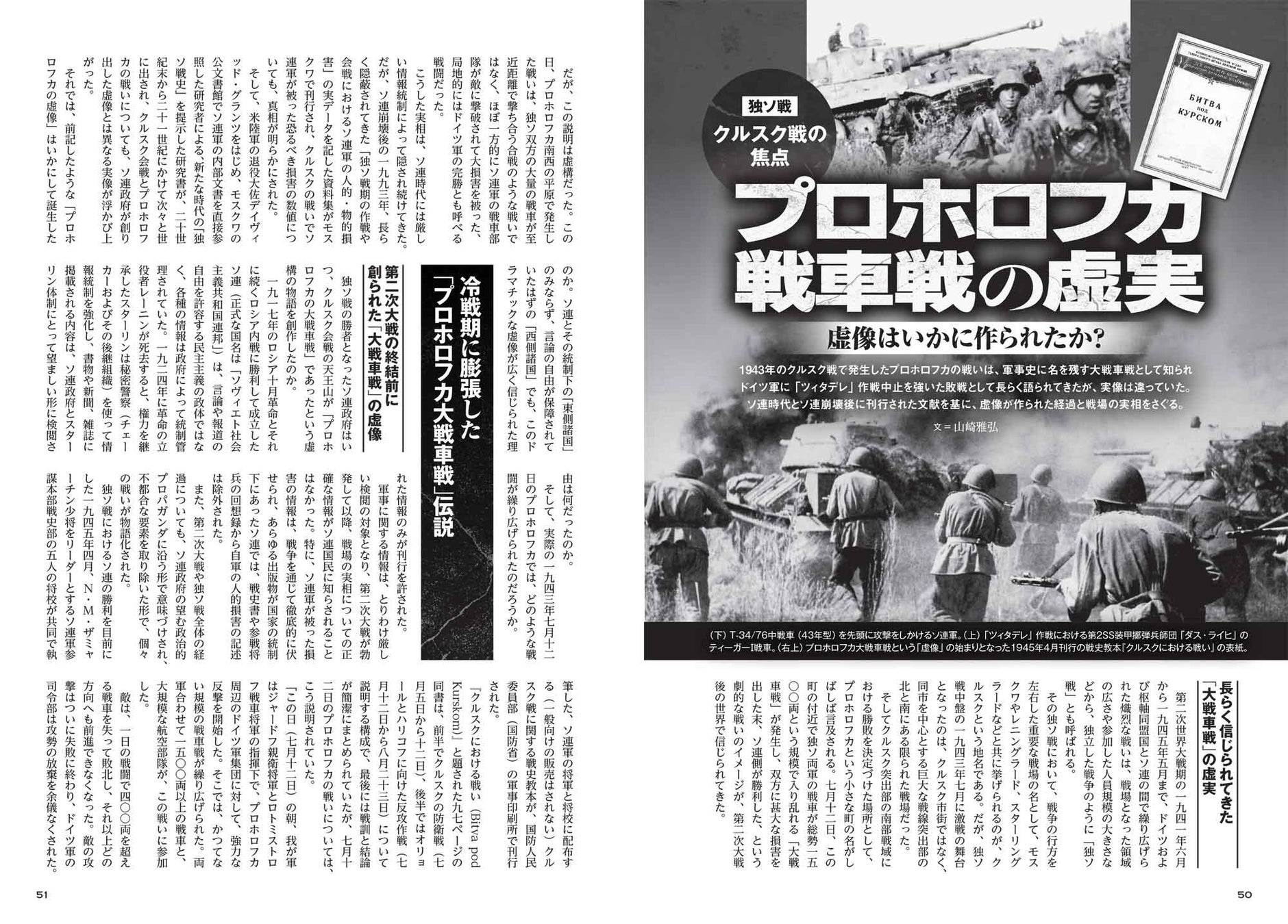 第二特集「プロホロフカ戦車戦の虚実~虚像はいかに作られたか」は、第二次世界大戦の独ソ戦における重要な戦いのひとつ、クルスクの戦いの焦点となったプロホロフカ戦車戦について、戦後定説として言われてきた、両軍合わせて1500両の戦車が投入された戦いではなかったことが明らかになっていますが、どのようにしてそのような虚像が作られ、流布されたのかについて検証します。