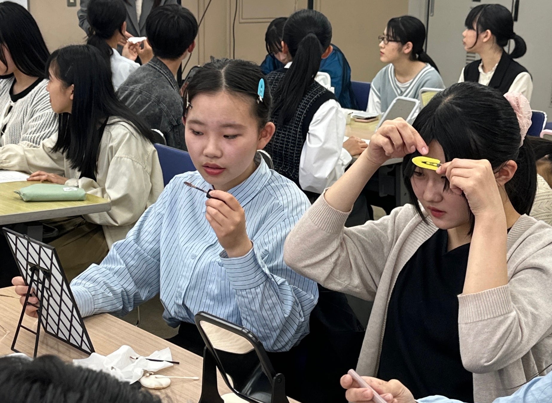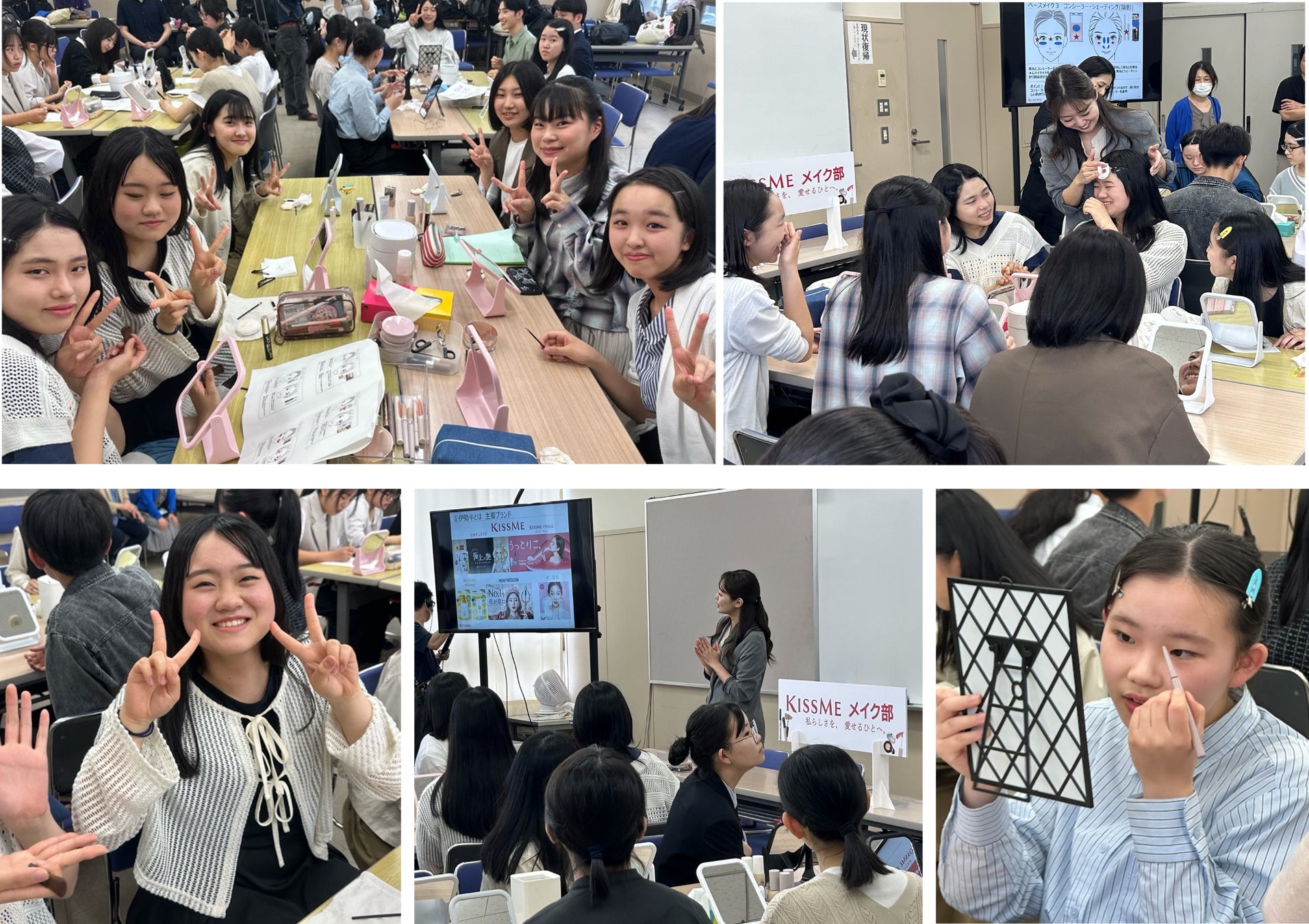 校則でメイク禁止の高校が多い中、同校は毎週金曜日に「愛商オフィスカジュアルデー」を実施しており、洋服とメイクを自身で考えて登校が可能なこの日に合わせて、KISSMEメイク部を実施しました。