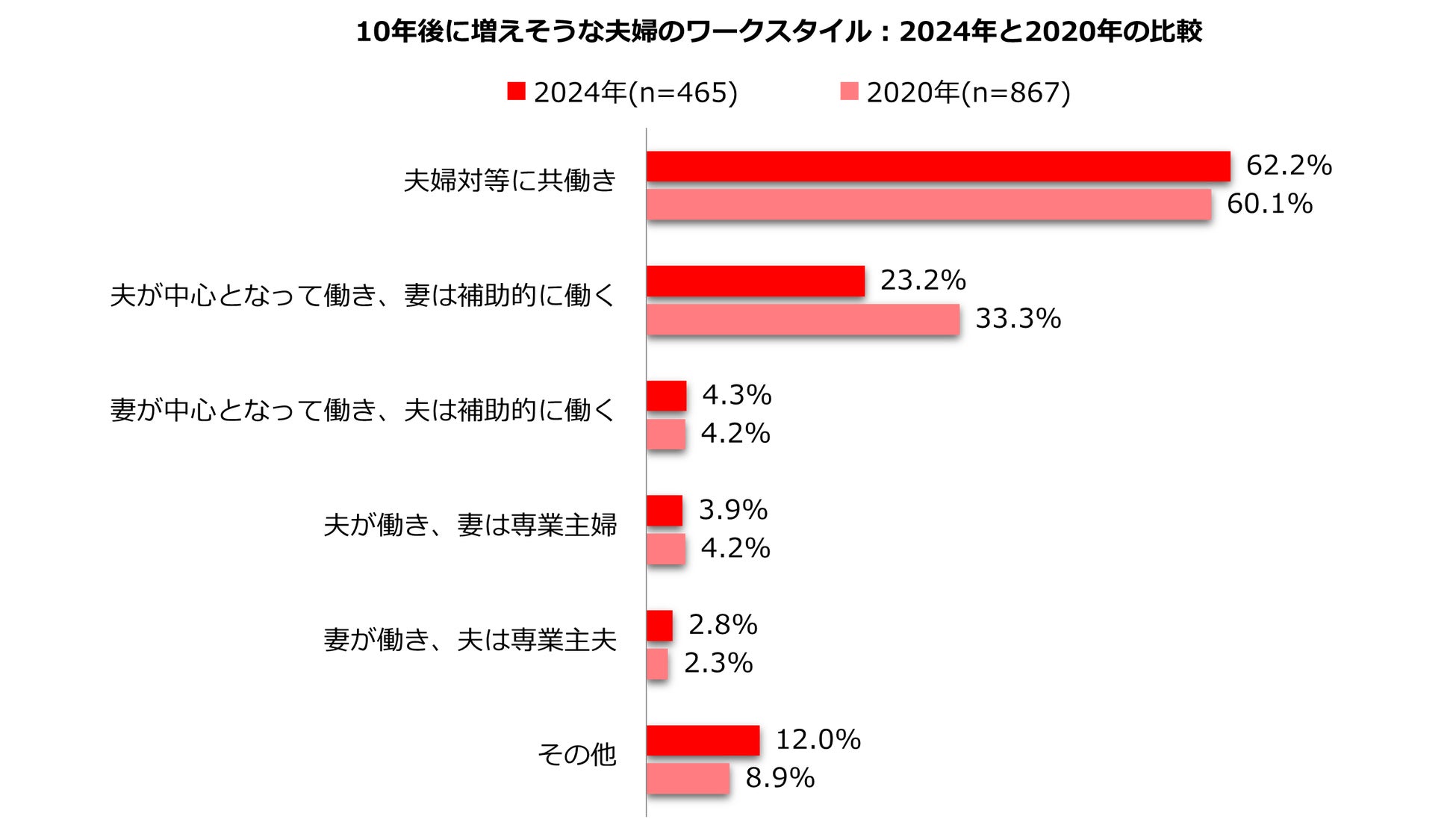 2.10年後に増えそうな夫婦の働き方:2024年と2020年の比較